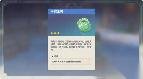 〓奖励〓 旅行者们可以在机关棋谭活动页面中查看挑战任务。累积节庆热度可以解锁后续阶段的挑战任务。每完成一项任务,都可以获得相应数量的「平安玉符」。