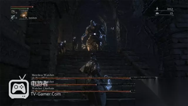 缺点也不得不提,那就是过长的载入时间和偶尔的帧数问题,这其中任何一个问题都是制作组应该反思的。不过话说回来,这是魂系列在本时代的首款精神续作,而且帧数也是这个系列的老问题了。虽说帧数波动这问题在你单人玩的时候并不会常常出现,但在有小伙伴加入游戏的时候,这个问题会变得更明显,而载入时间过长的问题可以通过使用Lamp(就是那个信使们围着的灯)传送的机制来缓解。Lamp不仅是《血源诅咒》的存档点,就像《黑暗之魂2》中的火堆一样,让你传回你老家Hunters Dream,但你不能在Lamp和Lamp之间传送,你知道这意味这什么吗?你必须忍受两个长达30秒的载入时间(A点到老家再到B点)。 但你在载入画面下付出的耐心并不是没有回报的,《血源诅咒》绝对值得玩,因为这游戏是相比之前的魂系列游戏青出于蓝而胜于蓝的一作。你在魂系列里练就的一身杀敌本事在《血源诅咒》里也是可用的,不过只是在某种程度上。如果你还沉醉于前几作里你用盾牌龟缩的英姿,那么你只会在《血源诅咒》里找到一块没什么作用的小木板盾。这游戏最需要的还是机动灵活性,而不是防御的硬度,当你初涉雅南城的时候,你会遭遇一帮丧失狗和一些举着火把的信徒,其中有些是装备火器的,射出的子弹不光会对你造成伤害,还能让你硬直片刻,所以灵活躲避是至关重要的,以免你被四处涌出的乱狗撕成碎肉。