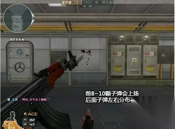 AK-A的弹道成“7”字形,前十发子弹向右上方上扬,然后其余子弹左右平均密集分布在一条线上。