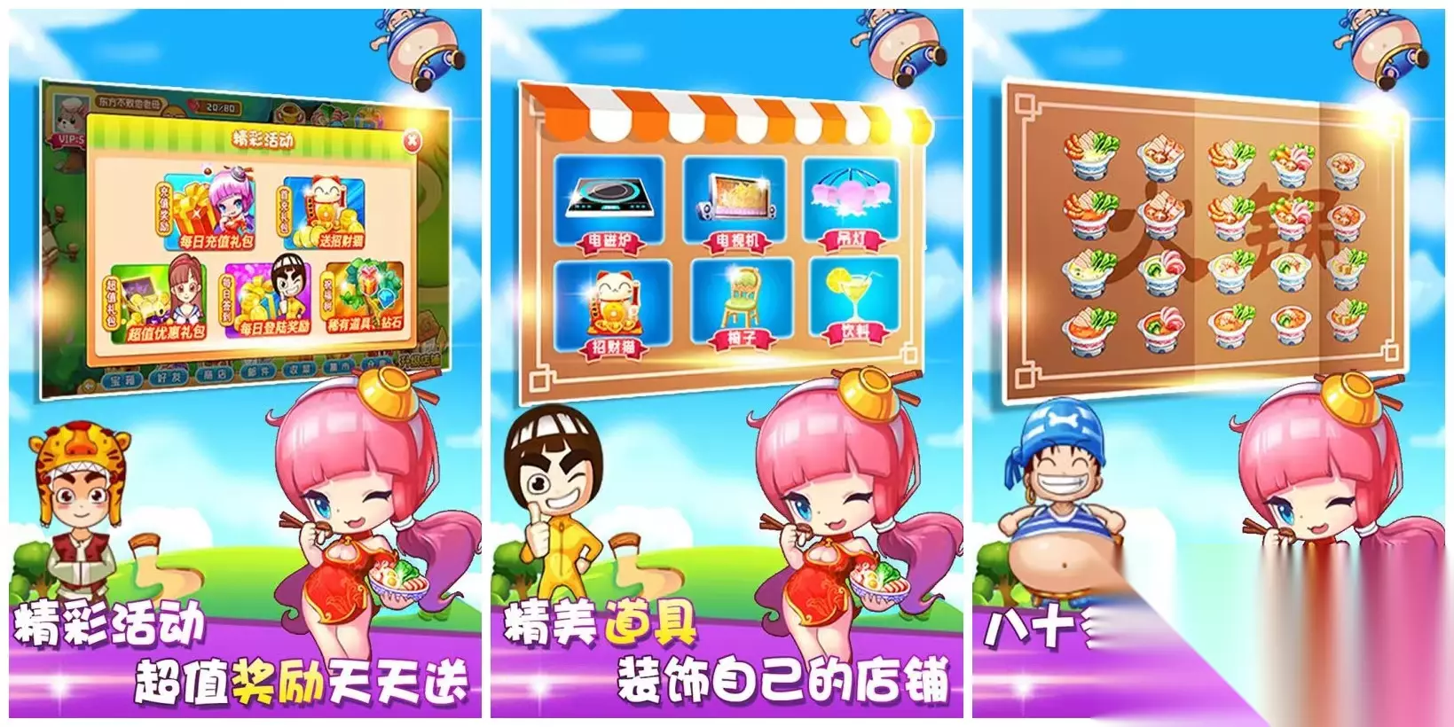 在浪漫大陆的浮空岛上,建立庄园。身为农场的主人,你可以开荒种田,还能创建家族,增添荣誉,还能获得奖励。把你想要的,建设成真实的模样,建设属于你的天空庄园。还能养自己想要的宠物。可以创造出独特风格的建筑。 扫码下载该游戏 高速下载 普通下载 优先233乐园APP下载 9、《开心火锅店》