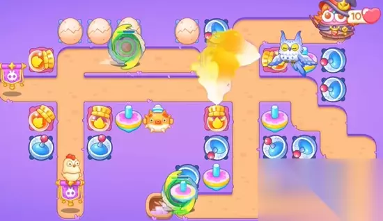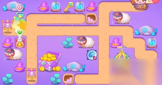 保卫萝卜4阿波与魔法宝藏第34关图文攻略,《保卫萝卜4》新主题“阿波与魔法宝藏”正式拉开序幕,这是一场关于勇气、智慧与友谊的传奇冒险。玩家将伴随阿波穿越至魔法学院,遭遇前所未有的挑战,为你分享保卫萝卜4阿波与魔法宝藏34金萝卜道具全清过关技巧,开始你的寻宝之旅吧! 1、开局我们先在中间位置放置满级雷达,然后在出口放置喷火器,使用雷达优先把钥匙打掉,第一波记得锁头。