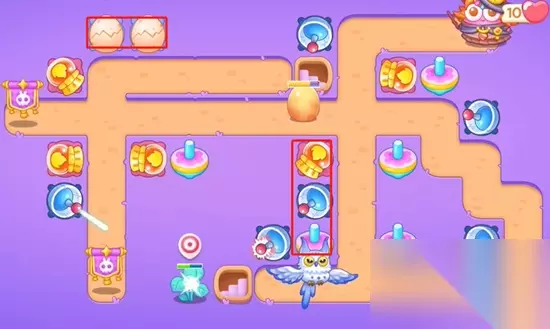3、三把钥匙全部打掉之后救出猫头鹰听,此时我们再激活左下的金币道具,后面会很难清理,前期及时打掉。