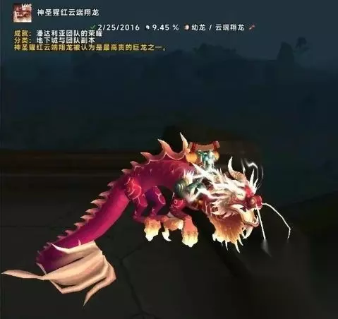 魔兽世界神圣系列云端翔龙全获取攻略 一、云端系列翔龙获取方法介绍 《魔兽世界》怀旧服限时回归福利>>>点击下载<<<领取3天免费游戏时间! 1、青龙之女(绿色) 获取方式较为简单,在潘达利亚时空漫游期间,准备好5000时空漫游币 ,前往漫游币商人处直接兑换即可。时空漫游活动的开启时间不固定,大家可以多留意游戏内的活动公告,提前积攒漫游币,时机一到就能顺利拿下这只绿色的翔龙。 2、神圣猩红云端翔龙(红色) 这只翔龙是潘达利亚团队成就奖励。你只需在世界频道留意相关信息,会有许多团长免费开成就团。加入这样的团队,跟着团长的指挥完成成就,就能将神圣猩红云端翔龙收入囊中 。在团队活动中,还能结识不少志同道合的小伙伴,一起享受游戏的乐趣。