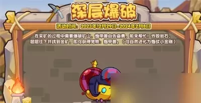《洛克王国》深层爆破局活动玩法分享 活动时间:自2023年12月29日起至2024年2月8日止 活动地点:拉布朗金矿场地带 珍贵奖励:炮甲兽