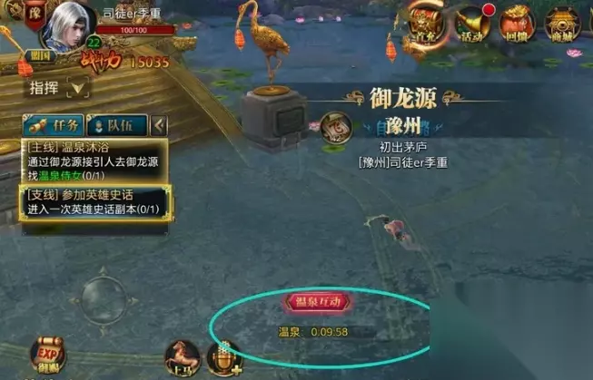 4、然后就会进入御龙源温泉之中,在该温泉中每天只能待10分钟获取经验;就可以完成任务。