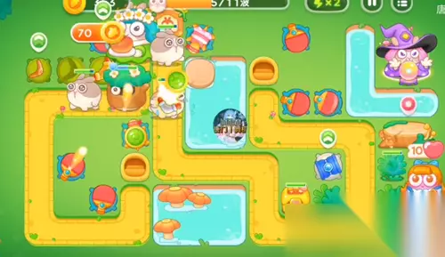 5、在右边道路的尽头来摆放上三个,有足够的金币就开始升级。