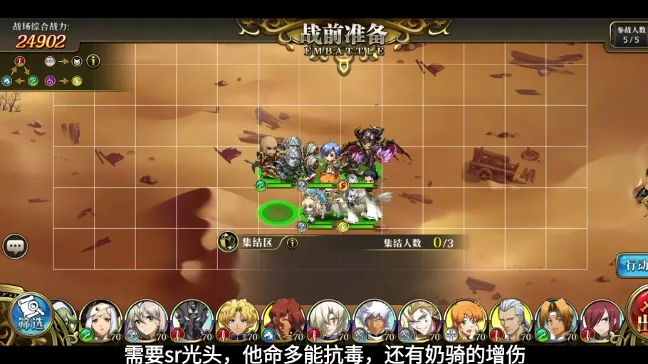 需要sr光头,他命多而且护卫3格完美抗毒,还有奶骑的增伤。 同时还需要固伤装备,后面打高额减伤时用到