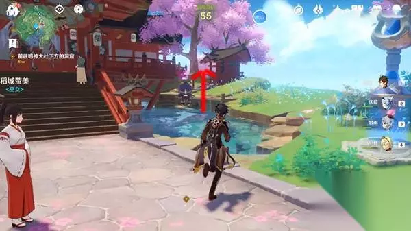原神前往鸣神大社下方的洞窟攻略 1、传送到鸣神大社锚点,朝箭头方向过去。