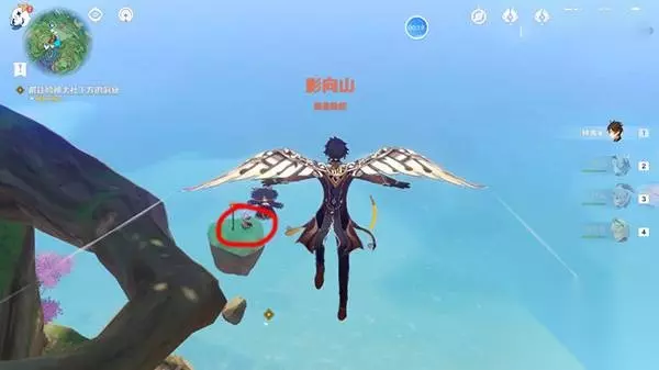 2、跳下悬崖,往前飞,可以看到浮空平台,飞过去并拿上雷种子。