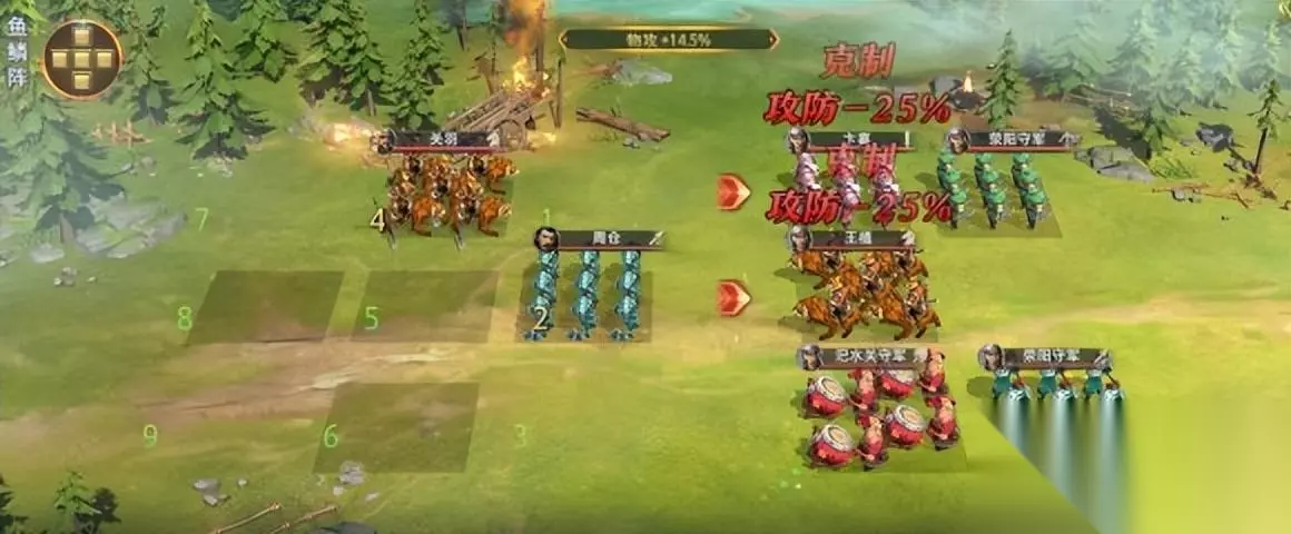 《卧龙2》关羽传1-5关攻略:温酒杀华雄,注意要点:选择兵种类型。操作方法:将关羽兵力调整为推荐骑兵类型,对华雄形成攻防克制。