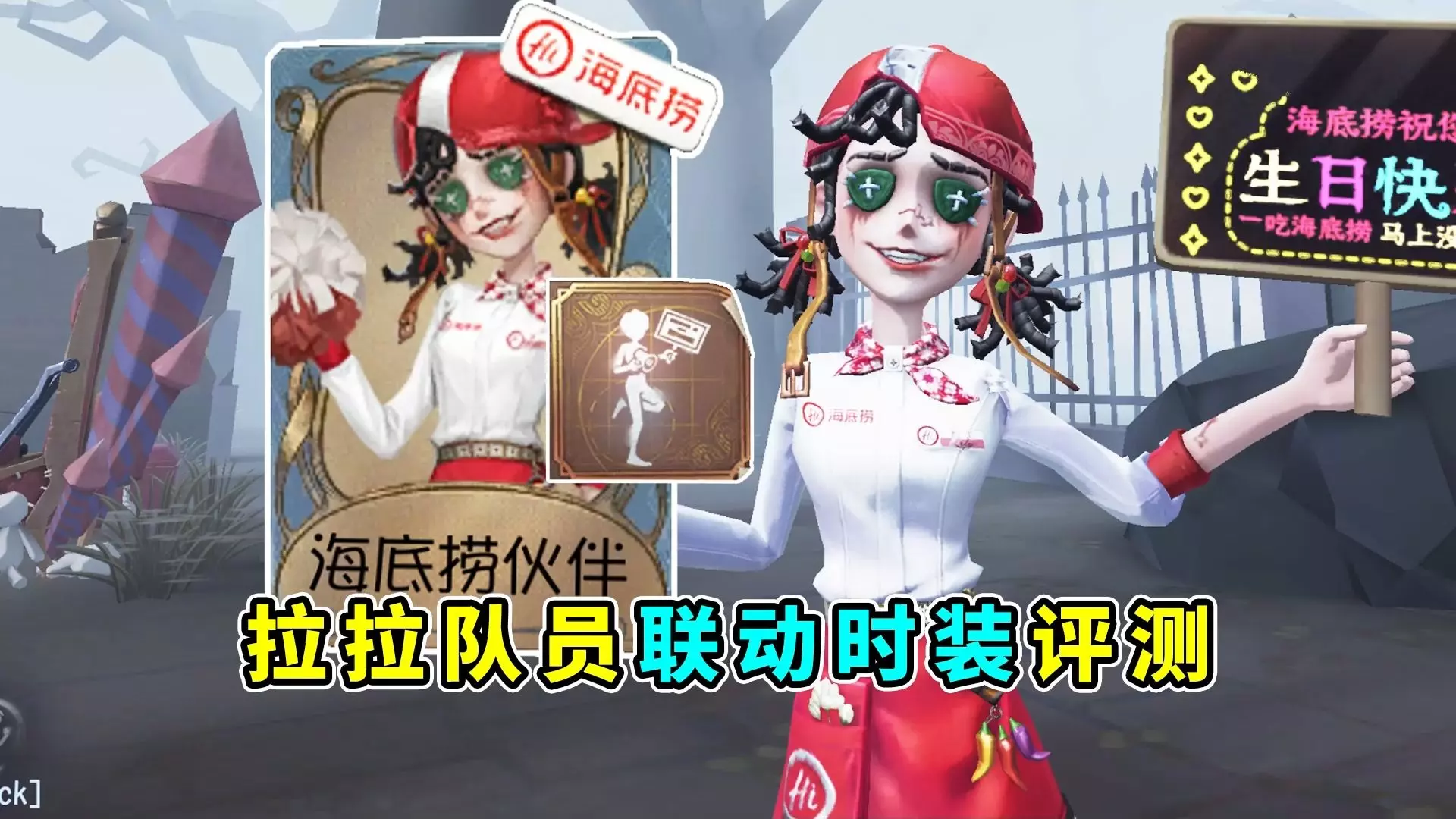 这是第五人格与海底捞的联动攻略,玩家可进入新地图海风小镇,找到拉拉队员对话互动,就能获取拉拉限定动作、联名动态贴纸,还能在游戏里过赛博生日。