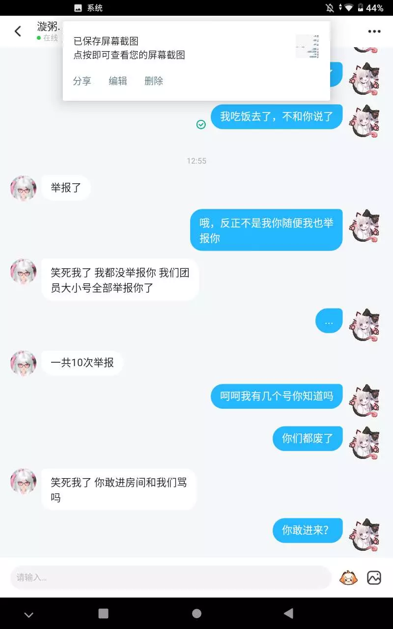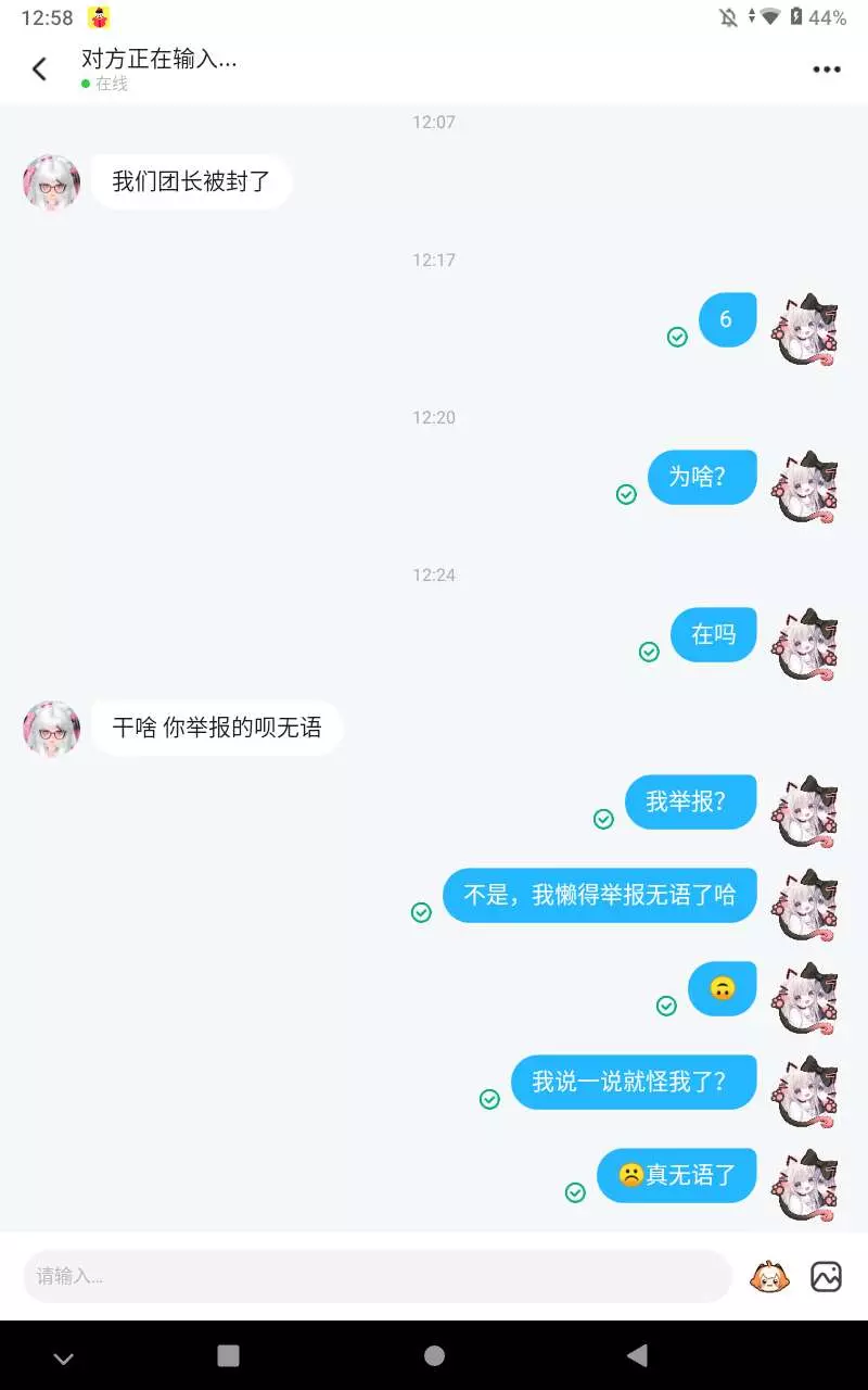 她们团长骂我,我举报她们团长,然后她们团长封号了,就想让我封号!!求帮举报