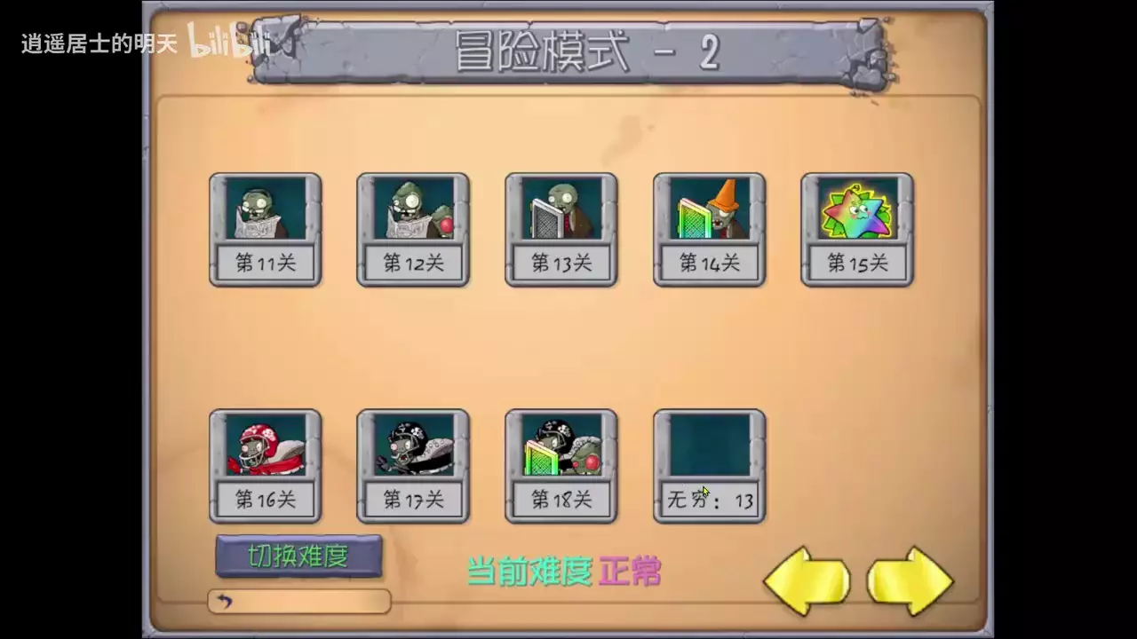 这是B站玩家逍遥居士的明天分享的植物大战僵尸抽卡版无尽轮回关卡内容,展示了第17关的对局画面,还介绍了彩虹星星果、傻呆瓜、阳光花盆等特色植物,呈现了关卡选择界面。