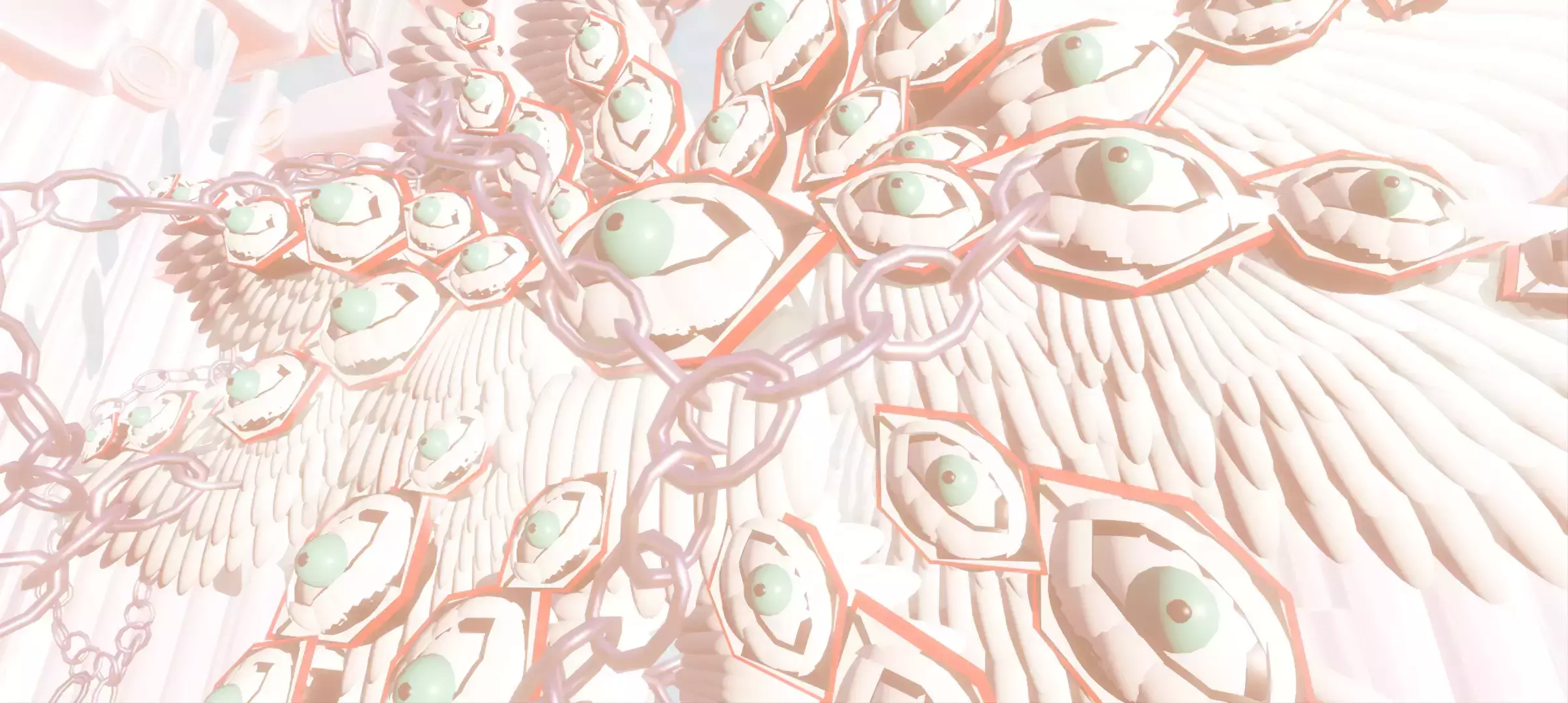 (很干净 装饰看起来很舒服 云朵飘在空中☁️ 超级绝美 中间有个巨大的炽天使 炽天使被链子锁住了)