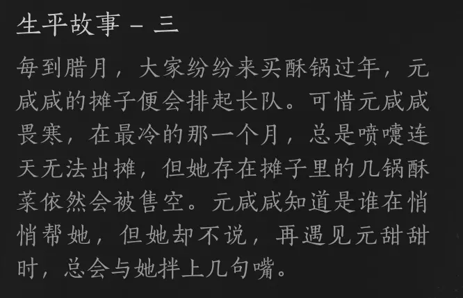 亦可以购买食物或赠送摊主礼物可获取好感,好感达到一定程度可以解锁故事以及回礼。