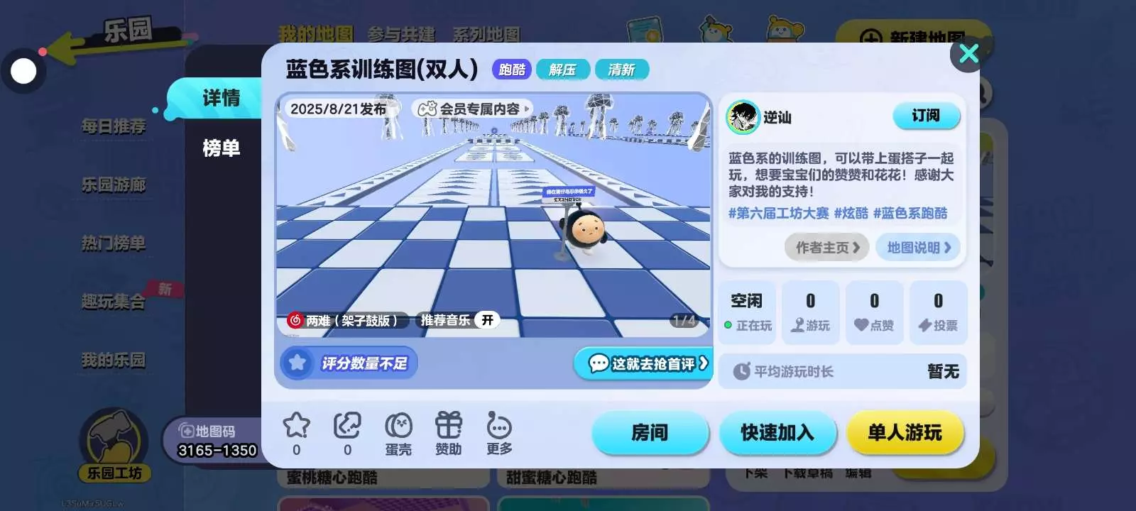找蛋搭子 偶尔会送东西 ssd别来 熟了自然会送 蛋仔名:逆讪(求主页点赞) 求给我的地图投票