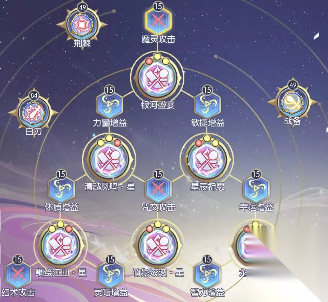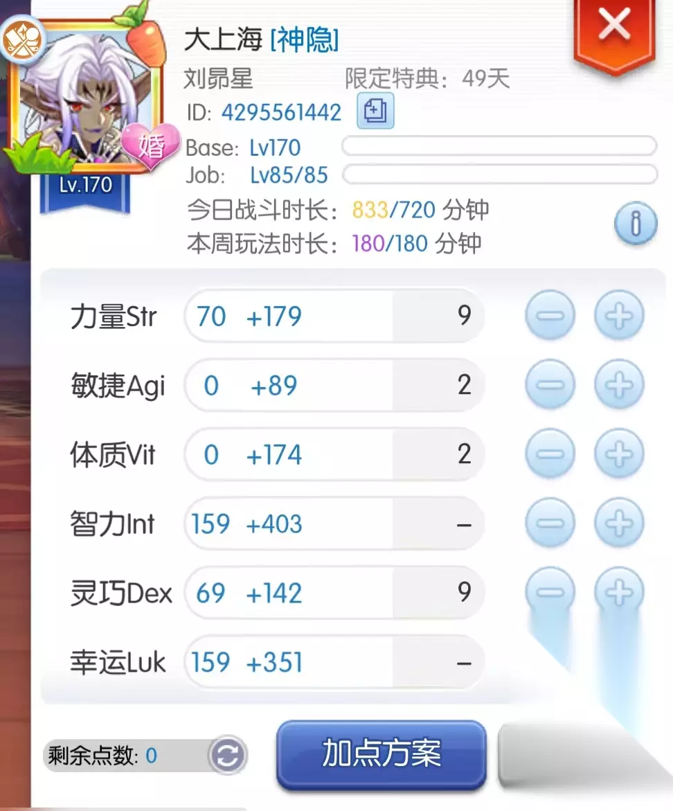里面有个细节,忽视属性符文我没用,其实只要忽视满足175了,一旦超过就不需要再用。如果忽视距离175还有12以内的差距,建议把魔攻200的红色符文换成忽视+12的红色符文。 ------------------------------------------------------------------------------------------------------------------------------ 四:核心秘奥符文和技能符文的选择 小当家在输出时,打击小怪效果非常好,我自己在主C的时候,周围的小怪掉血非常快,小怪死绝之后boss还剩一半多的血。boss后半段血会被自己和队友的白刃秘奥符文增伤,所以白刃必备。 至于第二个攻击符文我为什么用荆棘,因为小当家的攻击特征决定了其他几个攻击符文几乎没作用。 关于技能符文,一共就6种符文,6个空档,还能怎么选? 如果你要问为什么会说这句废话,实在是因为确实有人来问我符文该怎么选,我也不知道该怎么回答他。 ------------------------------------------------------------------------------------------------------------------------------ 五:遗物选择 首选火种,次选灵脉或混沌之锋(有啥用啥) ------------------------------------------------------------------------------------------------------------------------------ 六:属性配点(细节决定输出强度) 1:主C小当家 首先INT 和LUK加满 如果披风用贞努比亚卡,其余的属性点STR和DEX均分,大约str和dex可以加到69-70 一共约等于1.2%左右技能伤害,既然选择了用小当家主C,就应该抛弃一切防守,全力进攻,VIT就别考虑了。