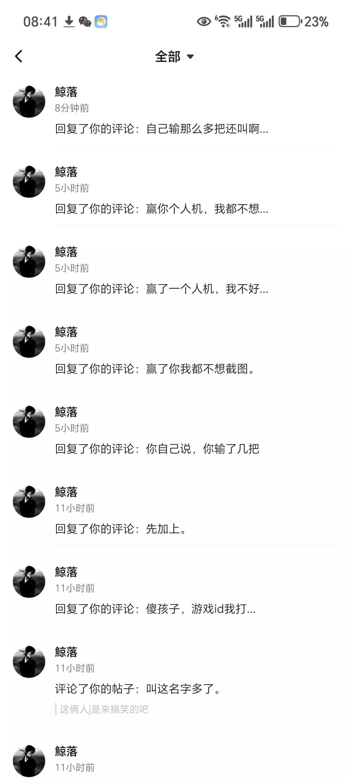 我的天呐,这小丑就逮着我一个发帖评论 我严重怀疑他那个是他的某个号,不然他怎么这么不服?