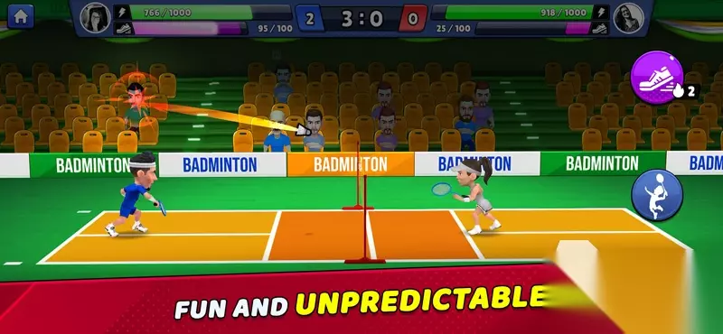 采用卡通风格打造的羽毛球竞技世界,营造出轻松又不失紧张的比赛节奏。每一回合都需要全神贯注应对对方来球,才能保证稳定发挥。击球与回防动作经过精细模拟,配合真实玩家在线对战,提升了整体互动性。通过不断参与比赛切磋技艺,不仅能积累经验,还能赢取丰厚奖励。得分越高,在排行榜上的位置就越靠前。 高速下载 普通下载 3、《决战羽毛球》