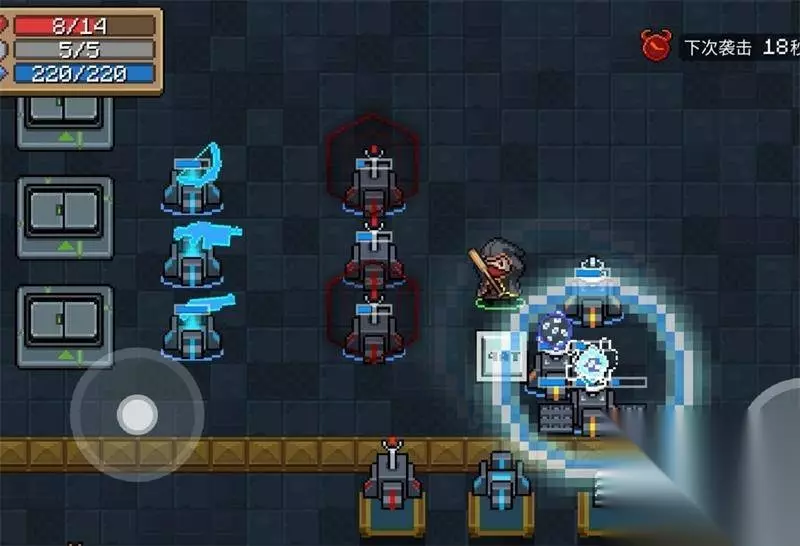 『前15波攻略』 在关卡前期,金钱的分配尤为重要。 合理分配金钱提升自己的战斗力。 首先将导师升到Lv.3 提升导师等级会依次提升血量(+2)、能量(+20)、护盾(+1),每三级循环一次。 其次将常用武器通过工匠提升到+10 关于机械大师优先度不高,等前面升级完成后有闲钱剩余提升到Lv.3,暂时先不要购买炮台。 前期战斗可以暂时不管魔法石,在场地中间把怪物消灭。 当有足够金钱的时候就可以开始搭建炮台。 可以利用脉冲装置和掩体交叉放置成3行的隔离墙,用于分割战场和提供角色恢复的掩体。