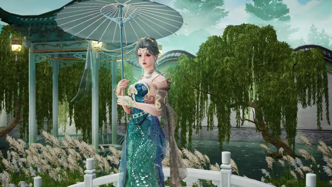 油纸伞于身后缓缓转开