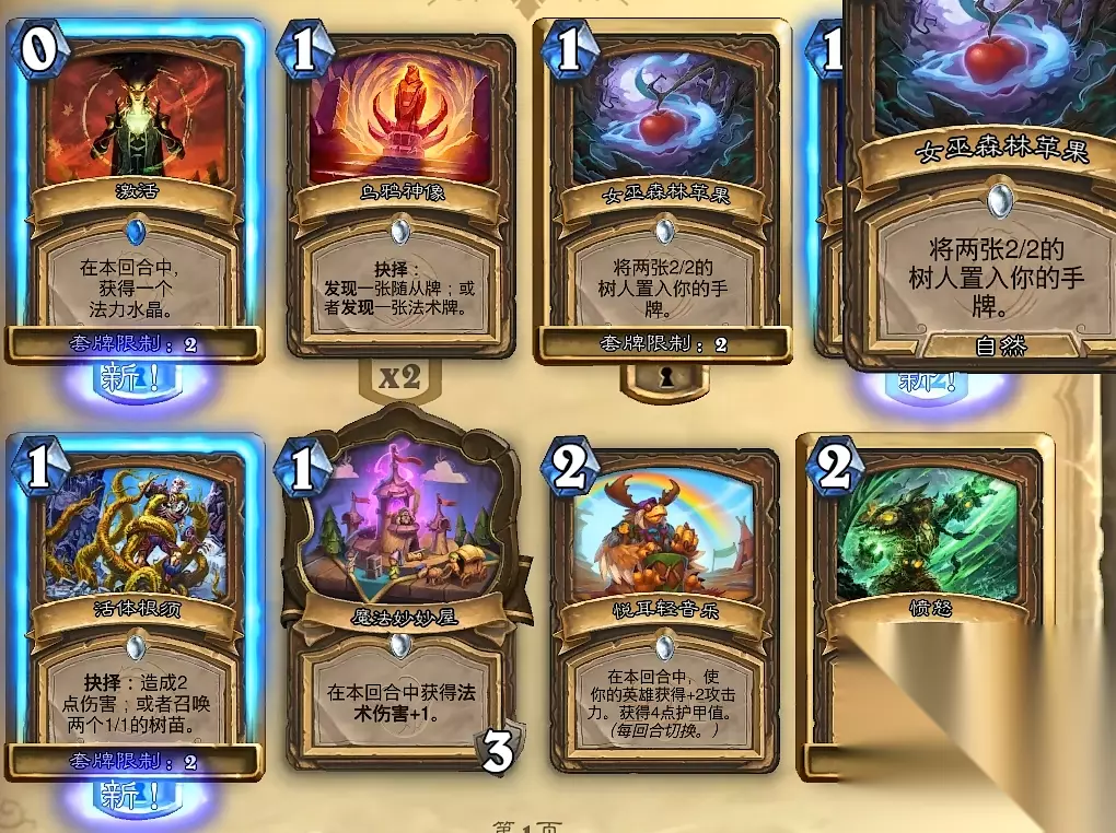 初始游戏里面所赠送我们的德鲁伊的卡组可以让我们组合成铺场的BUFF流派。这个流派总的来说并不算很弱,它可以让我们对德鲁伊的流派有着更进一步的认知,同时在初期的冲分也会有着不少的先天优势,玩家们可以使用这套来熟悉和冲分。