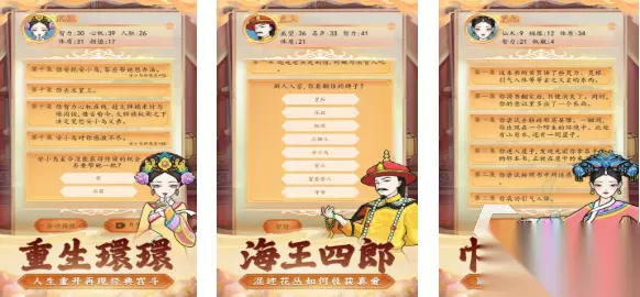 本作以为后宫小说爱好者塑造了比较真实的后宫世界观,硬核的宫斗剧情设定和完善剧情完美结合,点触屏幕上的角色进行文字互动的流程也很丝滑,宫斗PK+穿越的背景让本作可玩性大大提升,真实硬核的后宫生存环境更符合后宫爱好者的需求,相信在这款宫廷主题宫斗游戏里你也会提升情商。 高速下载 普通下载 优先233乐园APP下载 5、《后宫人生》