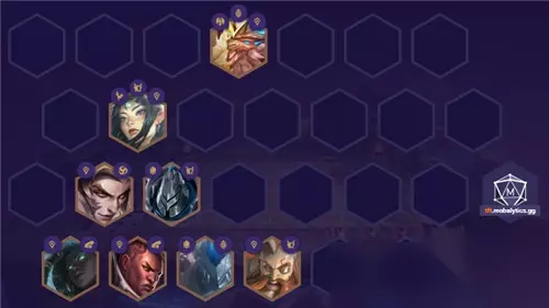 优先做阿克尚的装备,有大剑拿大剑,越多越好。2-1拉4,2-4拉5,前期最优开局奥拉夫+刀妹+塞纳+小炮+乌迪尔组成3光明3神盾2炮手高强度过渡,小炮先拿出输出装,还能拖一拖玩小恶魔的节奏。但如果3费卡来得比较早,锐雯豹女也是打工质量很高的选择,要记住过渡就围着哨兵神盾转,这样最为平滑! 过渡阵容