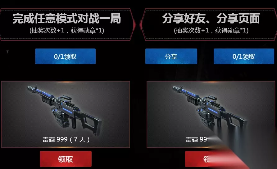 三、做任务,集勋章,领神器,抽大奖 1、活动期间,完成对应任务即可领取勋章并获得额外抽奖机会! 2、集齐2枚勋章即可获得神器(7天),集齐4枚勋章即可升级至神器(30天)! 3、完成任务后请刷新任务领取奖励,礼包直接发送至游戏内仓库