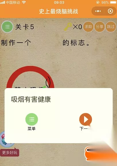 史上最烧脑挑战攻略,下面就为大家详细讲解史上微信最烧脑挑战全关卡图文攻略,希望这篇通关攻略对有在玩这款游戏的小伙伴们有所帮助。 史上最烧脑挑战第1关攻略: 帮助…