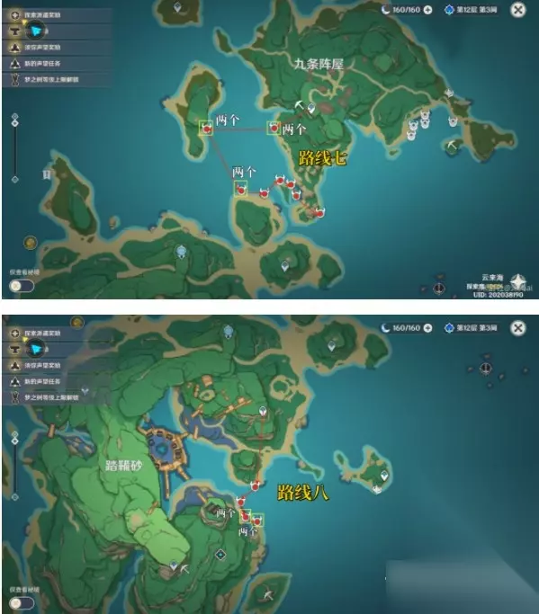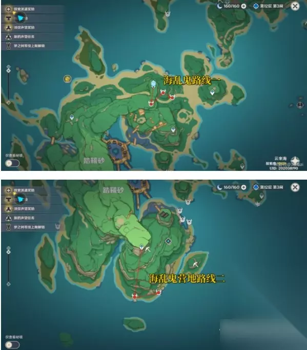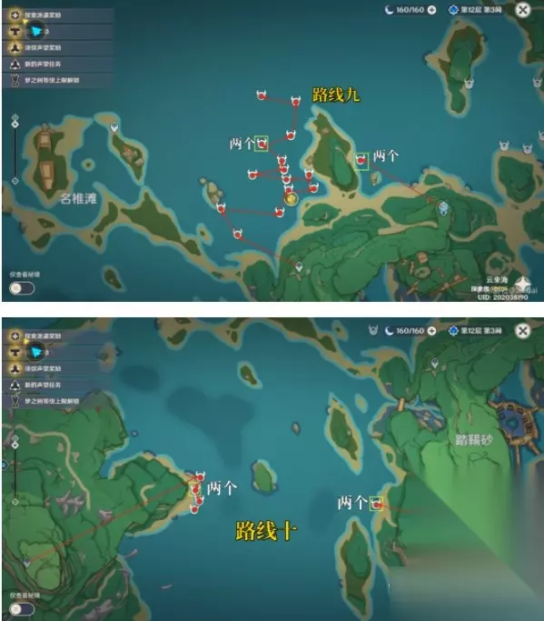 7.刀镡系列材料收集示意路线: 在讨伐海乱鬼时,名椎滩附近的海乱鬼在未触发并完成世界任务时无掉落物