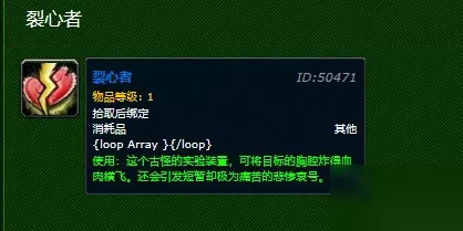 获得方法: 由[心型护匣]中低几率开出。 使用: 这个古怪的实验装置,可将目标的胸腔炸得血肉横飞。还会引发短暂却极为痛苦的悲惨哀号。 小编推荐:2020魔兽世界情人节世界事件活动大全>>> 以上就是小编为大家带来的关于魔兽世界裂心者获得方法的介绍了,想了解更多资讯请关注233乐园。