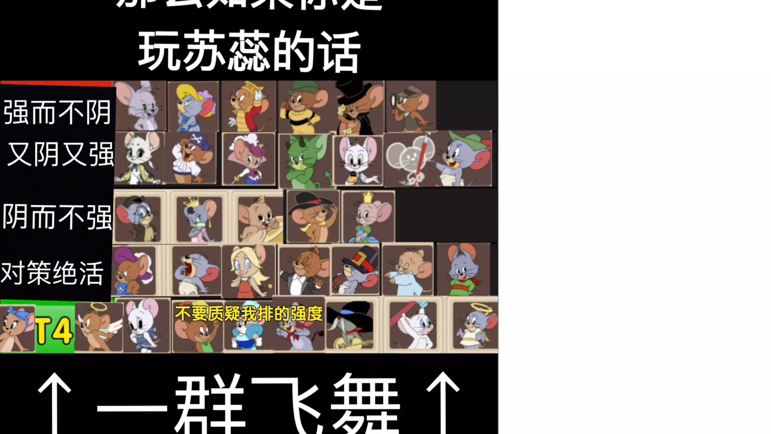 这是《猫和老鼠手游》段位飞升计划的第二集内容,聚焦赛前BP环节,讲解了对局难受的关键原因,展示了猫和老鼠角色的强度分级,指导玩家在T0.5、T1级别的强势角色里选择ban位,助力玩家提升对局体验,冲击更高段位。