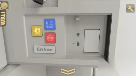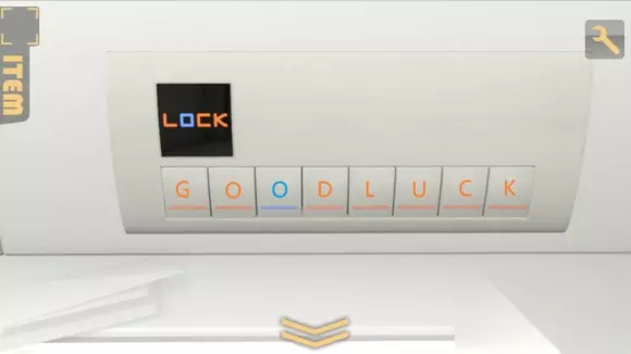 good luck一共八个字母,而机关刚好八个按钮,而且第三个字母和按钮都是蓝色的,不难想到这八个按钮分别代表G OOD L U C K,机关上写着lock,而且O是蓝色的