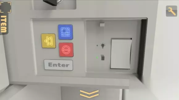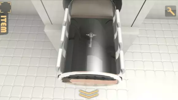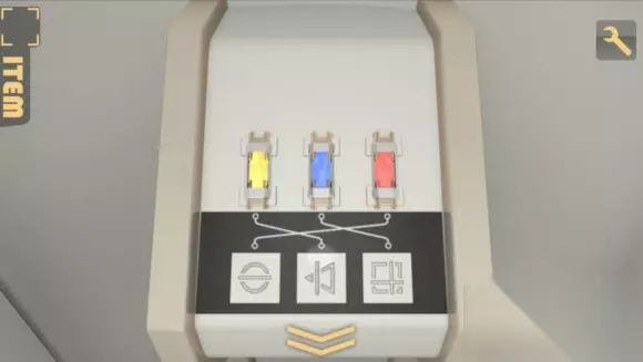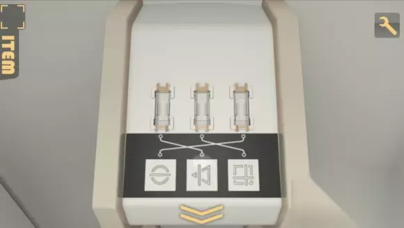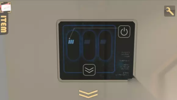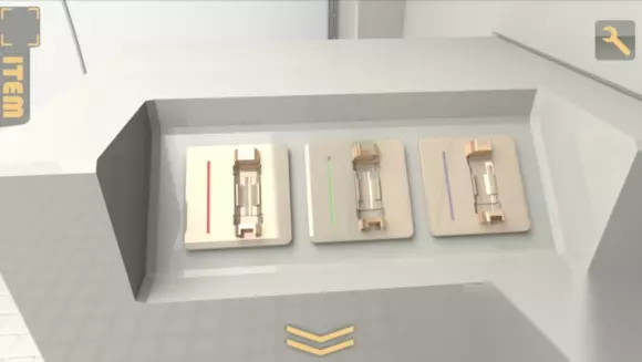 上面的三个槽明显是放试管的,于是再回地下室,取下三个试管,但注意颜色,我们要的是红绿蓝,所以又要重新取出绿色试管 方法是,在第二个房间里放入黄色试管,回到第三个房间,取走绿色试管,然后再回来这里放试管,完成后会出现一个圆柱形的玻璃柜,里面有钥匙