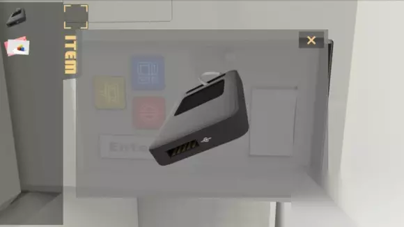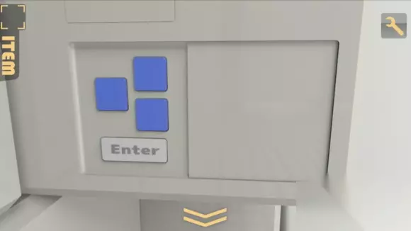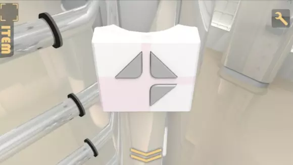重新再按下门,输密码,按上门,回到第一个房间,发现多了个白箱子 实际上是从那边的房间推过来的