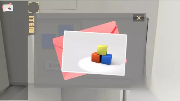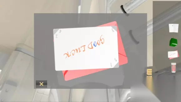 首先,向右转,可以看到地面上有个红色的信封,捡起来打开,取出卡片