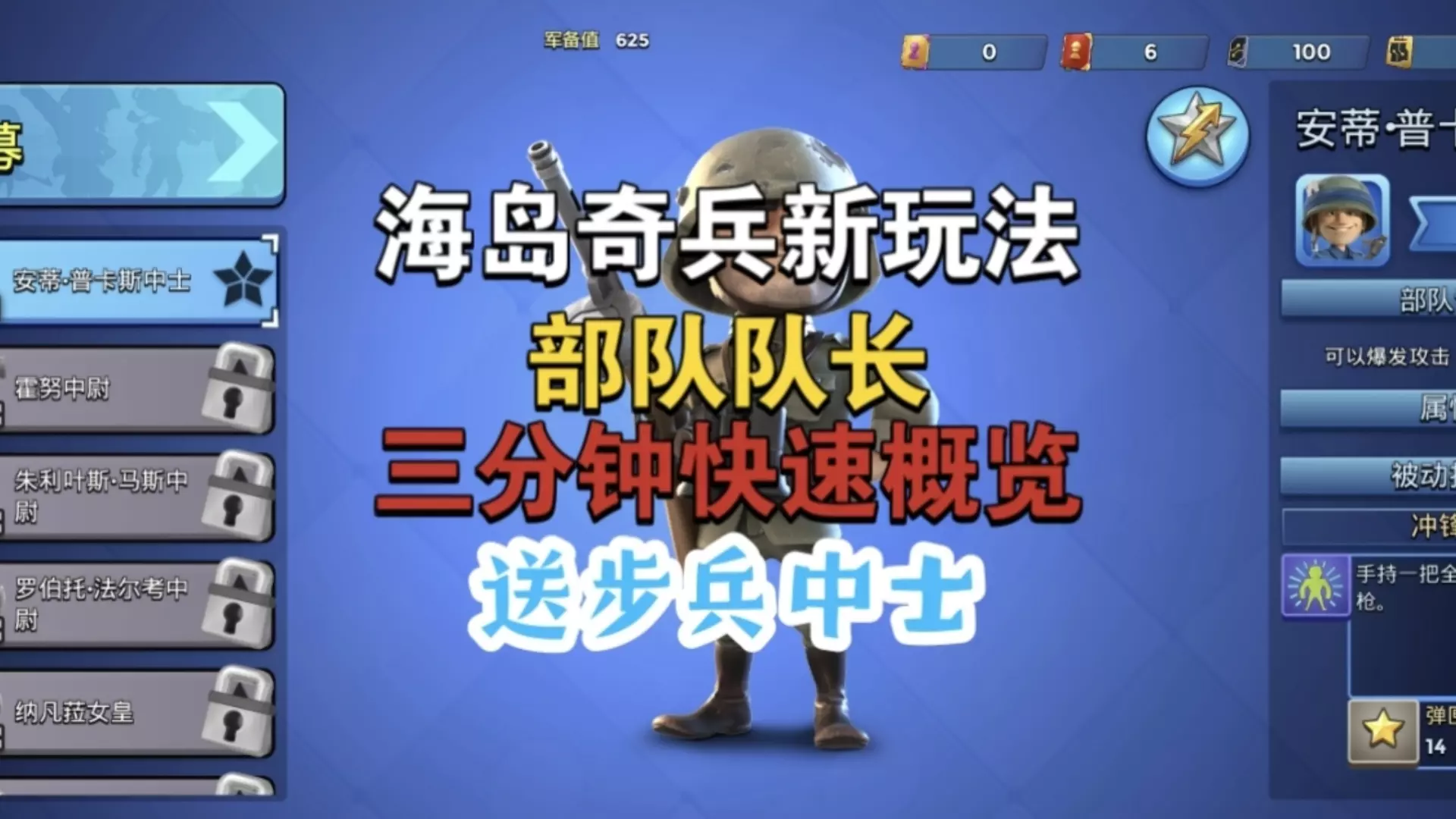 策略游戏海岛奇兵国际服迎来更新,推出新玩法,新增步兵队长角色,该角色可提升部队作战表现,完成队长试炼任务还能领取模组等奖励,后续或推出更多步兵队长。