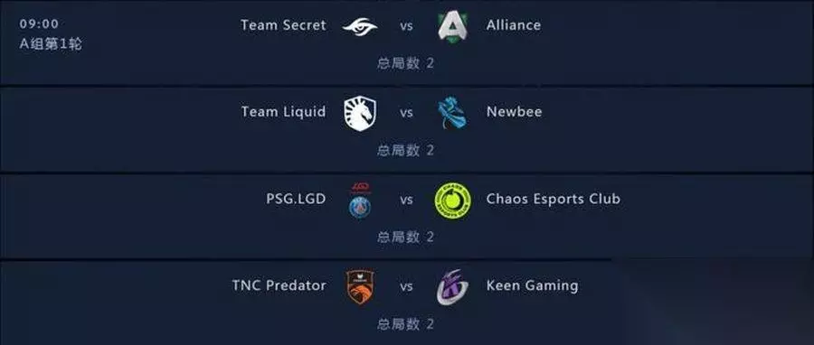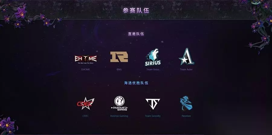 海选赛: 7月3日- 7月7日 预选赛: 7月8日- 7月15日 小组赛阶段:8月15日- 8月18日 总决赛: 8月20日- 8月2 日本次公开预选赛分为A、B两轮,采用单败淘汰制,每轮比赛前二的队伍将晋级中国区预选。目前赛程已经在完美对战平台上公布,A轮比赛iG位于B组,iG.V位于E组,两支队伍首轮轮空,于3日12: 00 开始首场比赛 。 A组:Alliance、Chaos、KG、Mineski、Newbee、PSG.LGD、Liquid、Secret、TNC B组:EG、Fnatic、Infamous、NaVi、NiP、OG、RNG、VG、VP