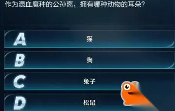 在王者荣耀中,魔种英雄都有着非常有趣的外形,基本上都是动物化形成人。那么你知道公孙离作为混血魔种,拥有的是哪种动物的耳朵吗,正确答案是兔子,看图片就能答对了哦。