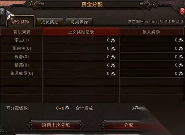 2、领取宗派俸禄和奖金。 每周日可以到宗派人事管理蒋忠义(宗派驻地【88,66】)处领取由宗主提前设定的贡献资金。宗派奖金由宗主根据宗派成员表现随时发放,成员需消耗功劳值领取。