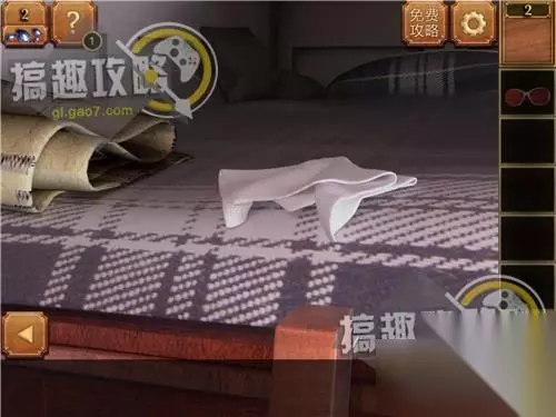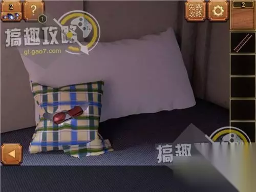 用剪刀剪开右边床上的靠枕,拿到墨镜。