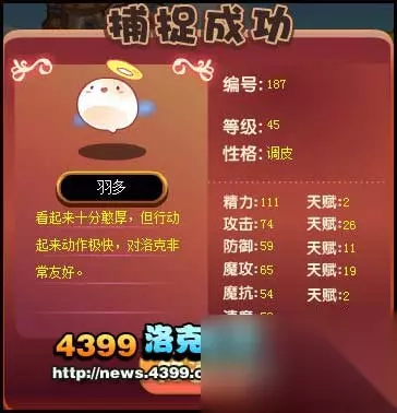 2、洛克王国羽多怎么抓 今天小涯子一定要带只可爱的羽多回家了。开始跟它战斗了,难度4星,等级53-55,技能也,会催眠哦,不过对小涯子来说是小case了。