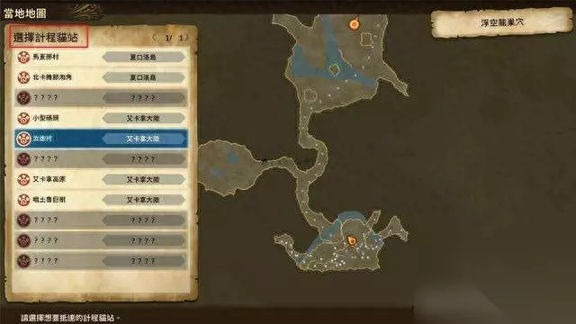 第三个容易被忽视的功能就是“快捷移动”。《怪物猎人物语2》中打开地图后,按X就可弹出计程车猫站清单,选择猫站可以立即到达目的地。