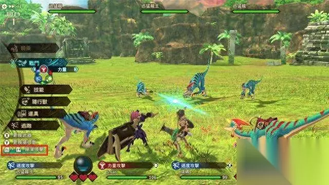 《怪物猎人物语2》回合制战斗的精髓就是“相克”关系,我们要熟悉力量攻击克制速度攻击,速度攻击克制技巧攻击、技巧攻击克制力量攻击的基本原理,然后通过图鉴熟悉怪物的攻击方式和习性。有些怪物在特殊状态会转换攻击方式,大家要注意。而我们熟悉了怪物的攻击方式,就可以轻松打出双重攻击!在已知敌人的攻击方式后,我们可以更换克制的随行兽(不消耗回合数)来应对!