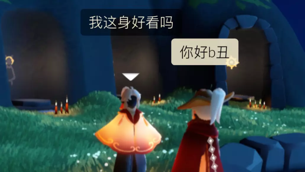这是一则光遇日常趣味内容,玩家假装萌新与小黑搭话,随后开启土味情话互动,展现了光遇玩家的趣味社交日常,是光遇玩家间常见的趣味互动操作。