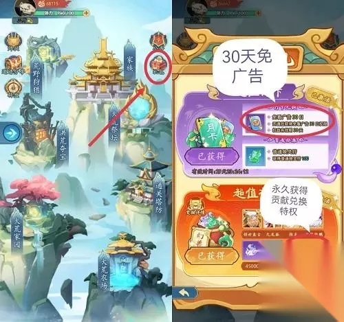 显然两个礼包各有所长,建议都拿下,其中超值礼包是人手必备的,不仅可以获得大荒灵宠从而提升自身战力,还能获得永久贡献兑换特权。温馨提示:贡献兑换方式如下