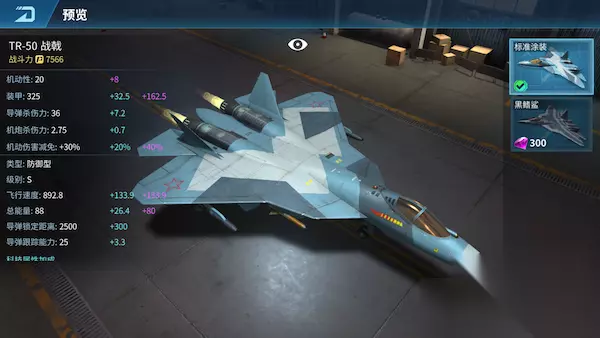 TR-50 战戟 TR-50战戟是一款高性能多用途战机,拥有匿迹性能,能作超音速巡航飞行。 解锁条件:等级40 飞机类型:防御型 购买条件:385钻石 提前购买:585钻石 满级属性