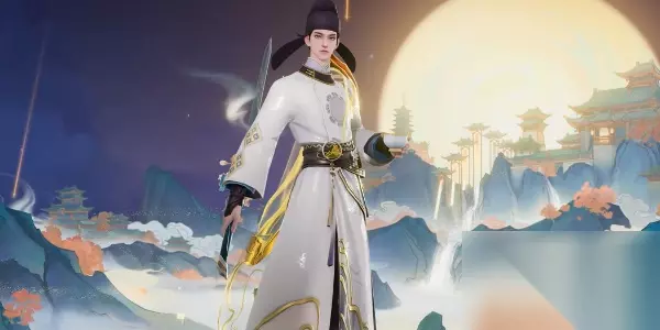 二、角色设计 整体设计以“明月”为设计起点,致敬李白,抒写他追寻了千年的明月光。以象征“明月光”的月白色为主色调,打造了一个头扎幞头、身着圆领袍衫、脚蹬长靿(yào)靴的盛唐时期的青年诗人形象。整体设计上,以盛唐的服饰为基础,结合他与明月相关的诗词进行幻想化的演绎——谪仙醉月,三分啸成剑气,七分酿了月光。