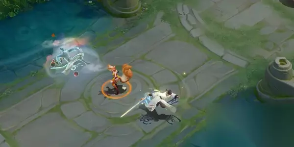 3、二技能: 执剑]划出—方山水画境,—轮明月与楼i阎映照其中,画境四周群山环绕,“皎如飞镜临丹阙,绿烟灭尽清辉发"显现其中,熠熠生辉。